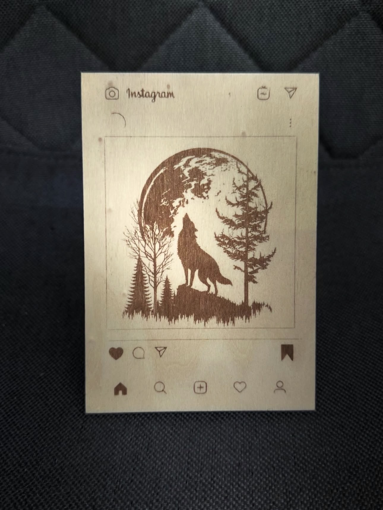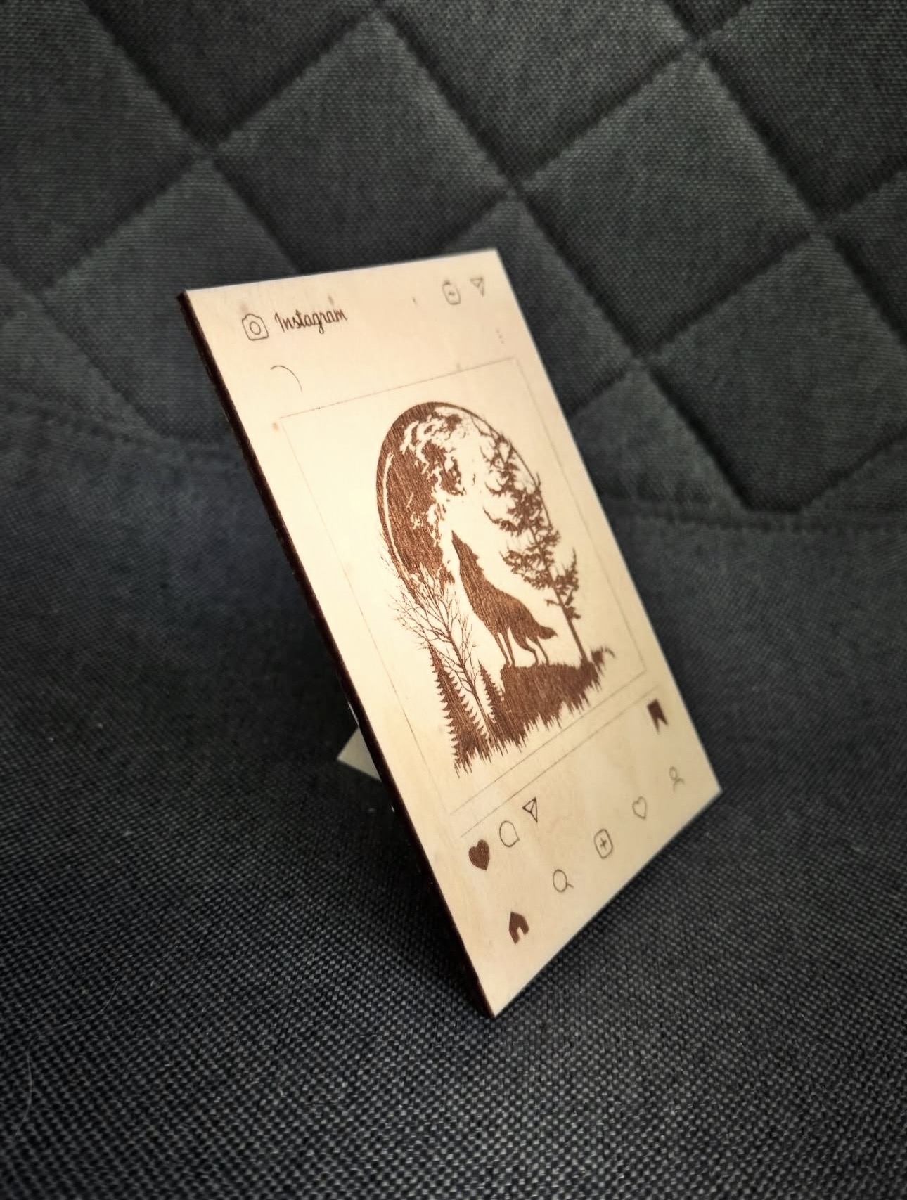 Dřevěný obrázek s podstavcem, motiv příspěvku na Instagramu, vlastní výběr gravírování (obrázku)