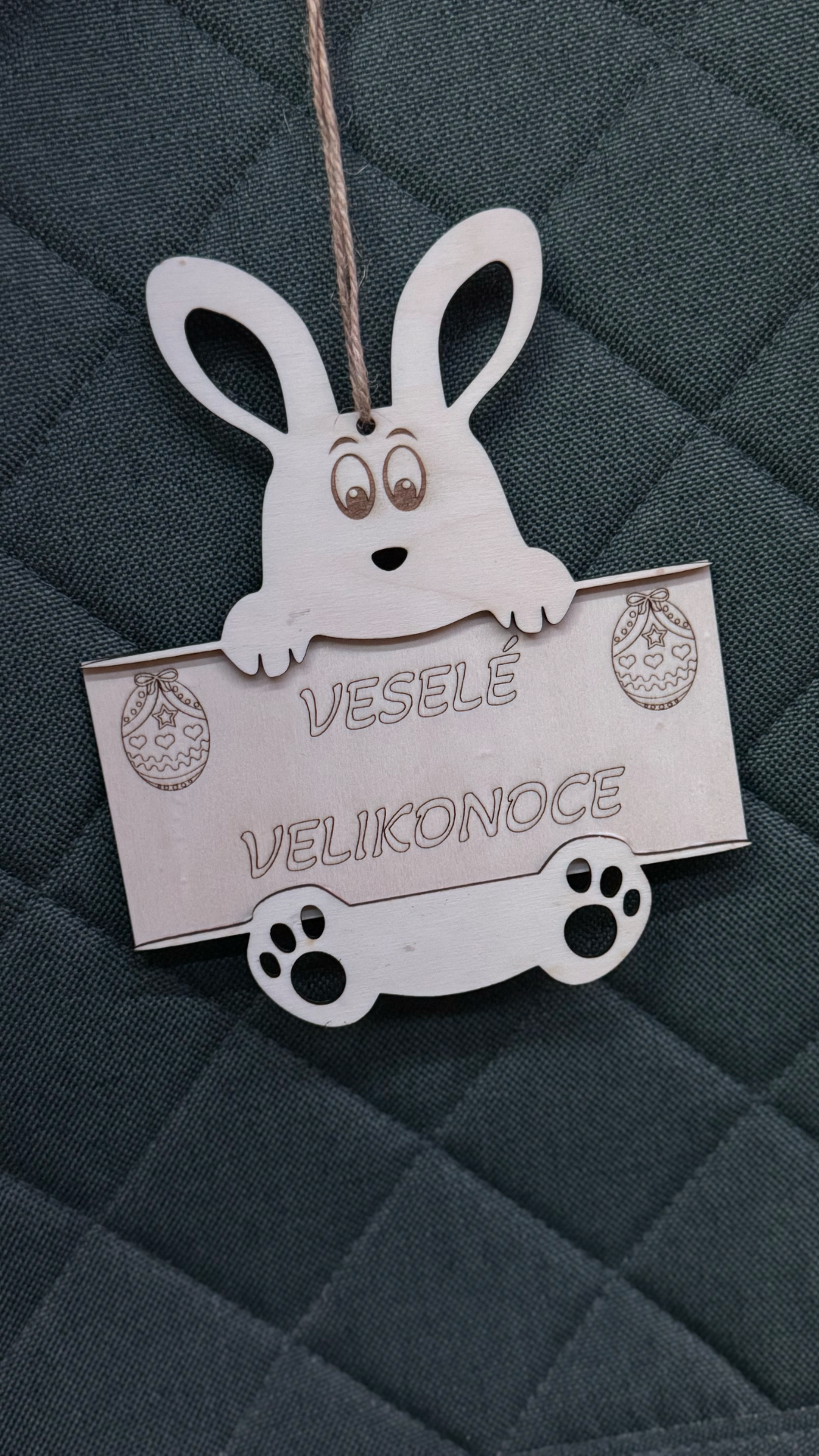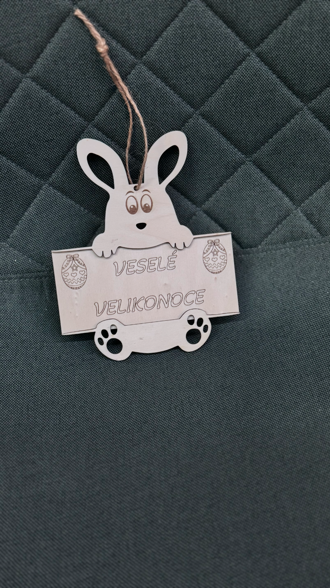 Dřevěný zajíček s gravírováním VESELÉ VELIKONOCE na zavěšení